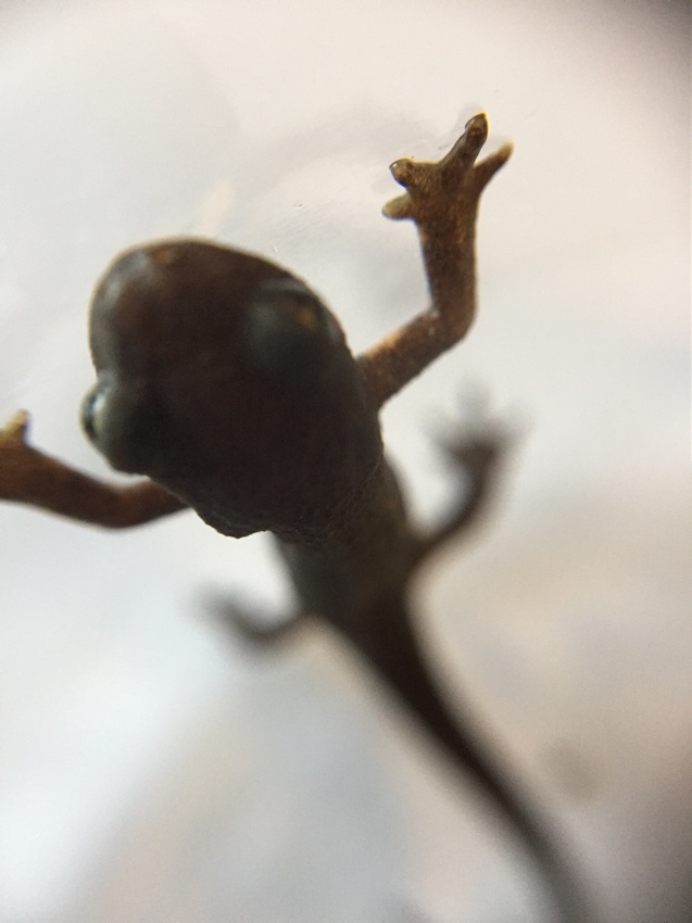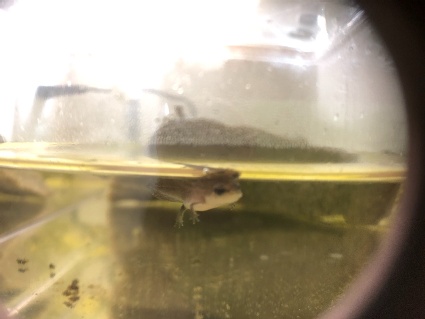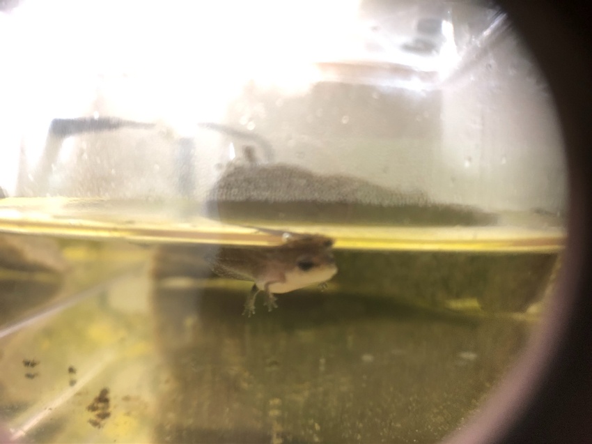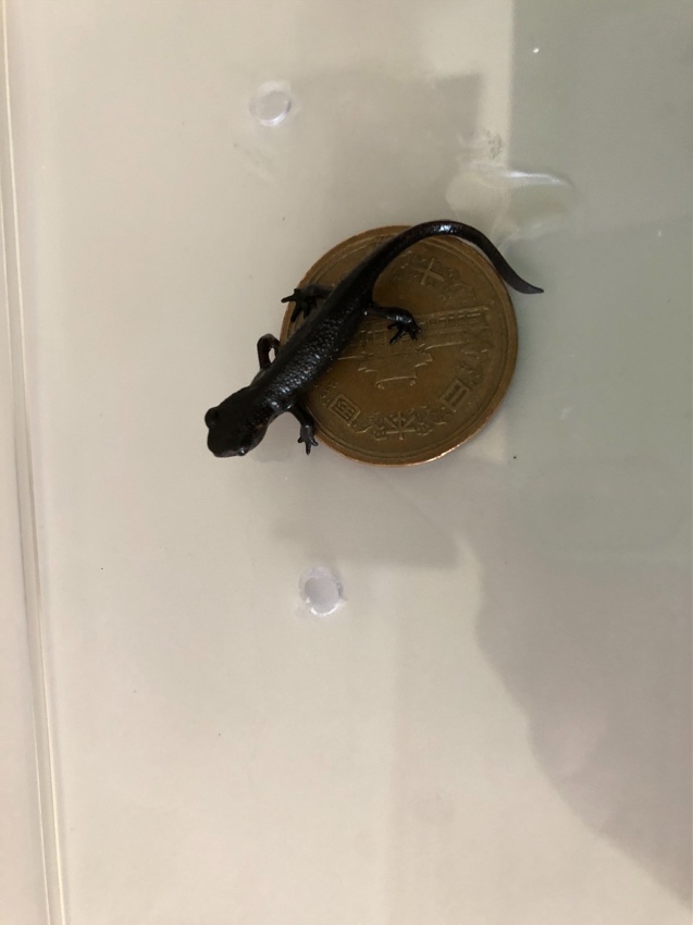 下写真は、生後1年半のイモリです。10円玉よりちょっとだけ、しっぽがはみ出すサイズです。